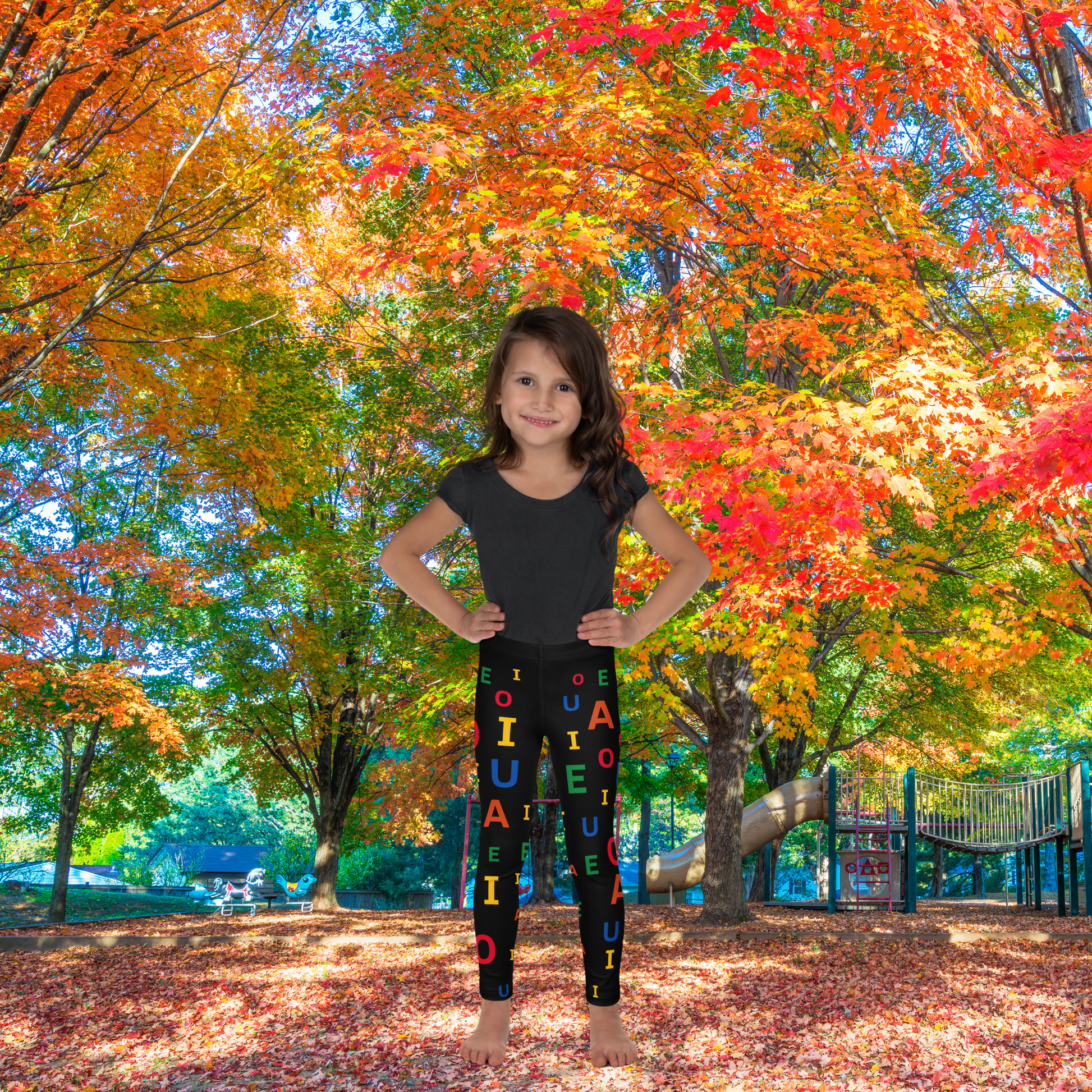 Leggings infantiles educativas Encuentra tu vocal favorita/fondo negro